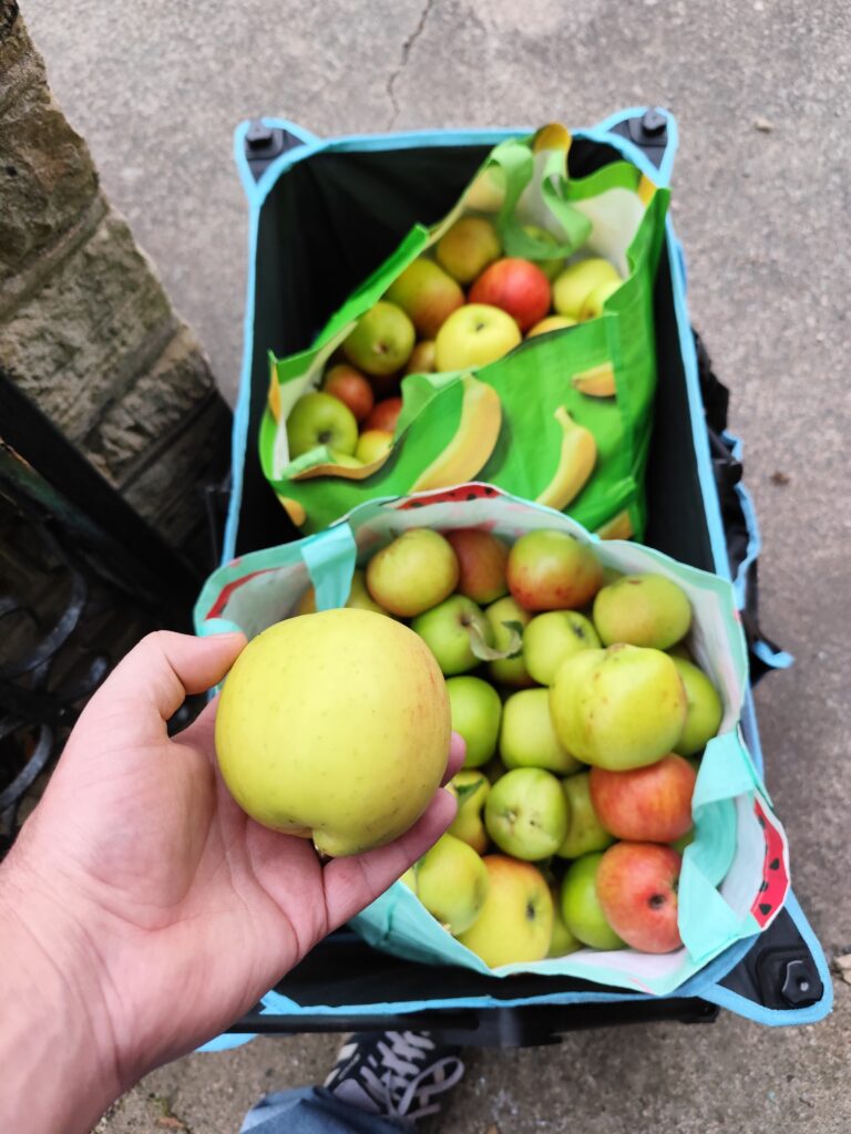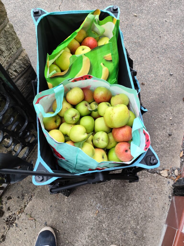 Went and gathered more apples from the allotment – there are some absolute monsters on there! I think we have two different types of cookers, but identifying them could be a challenge. Still – lots to juice!