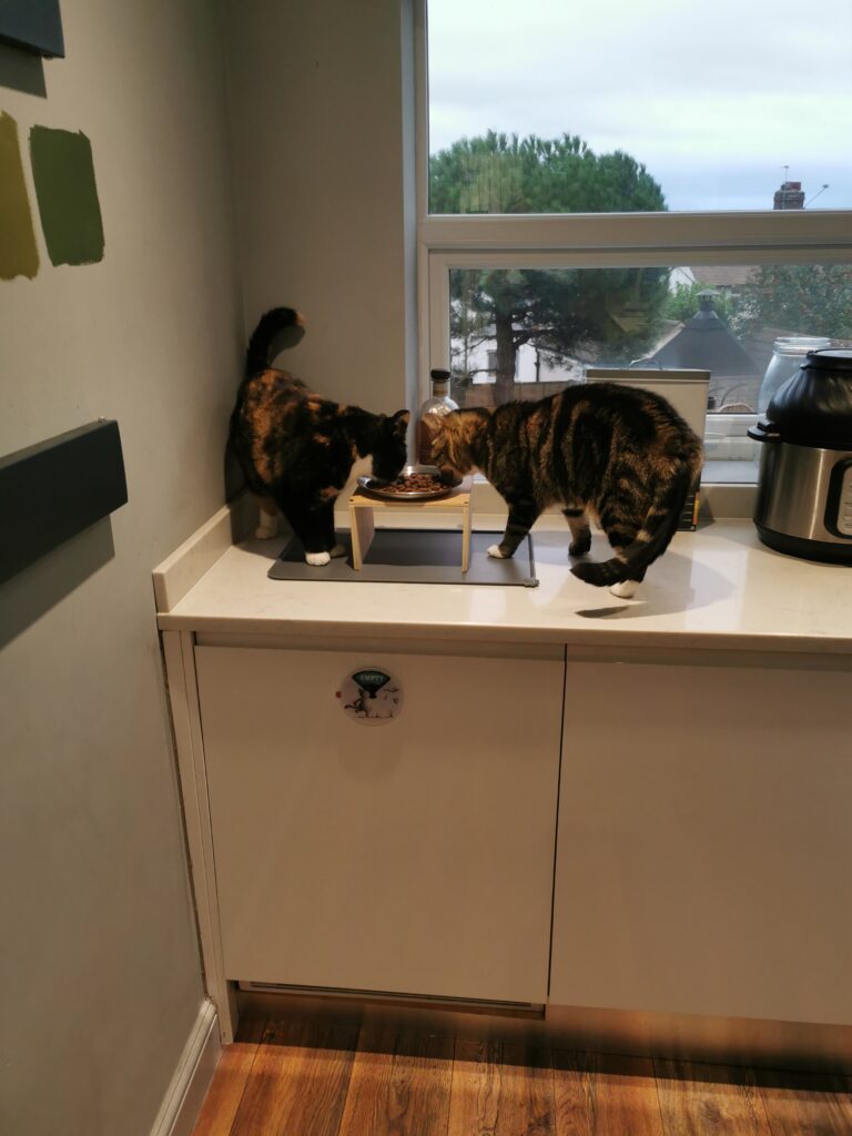 I am also watching my grand-kitties, so I nipped over to feed them early.