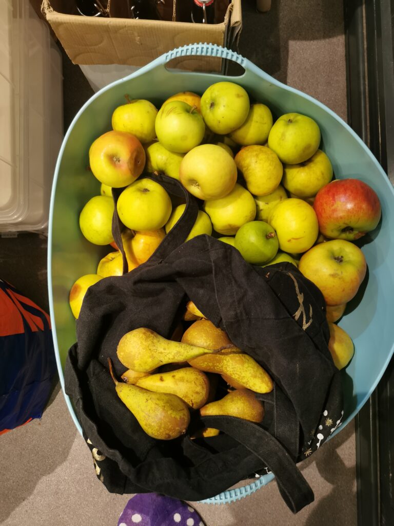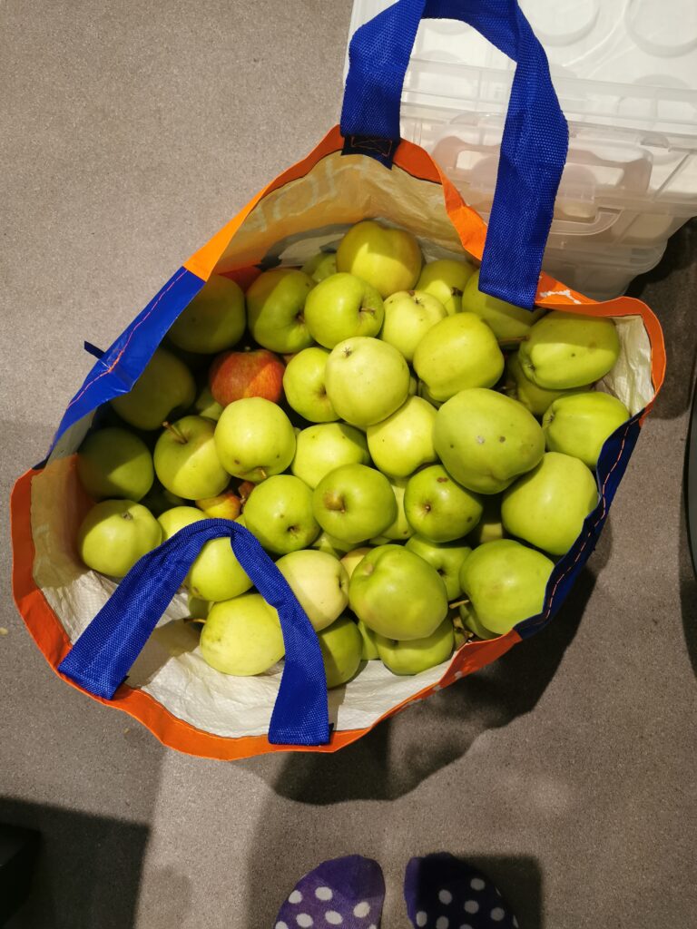 Today Rich dropped by with apples from his trees in the back garden.